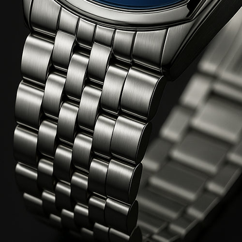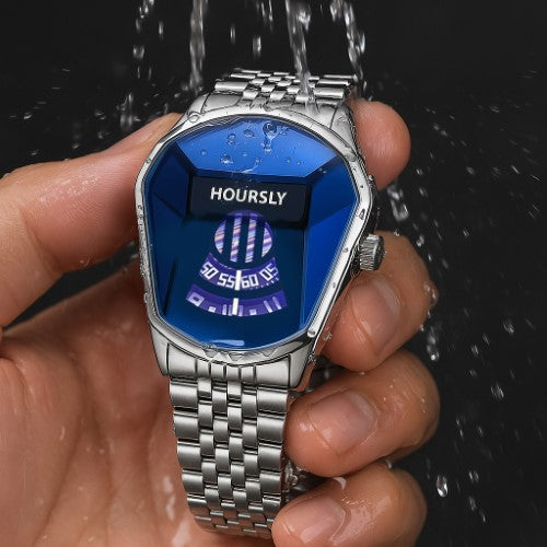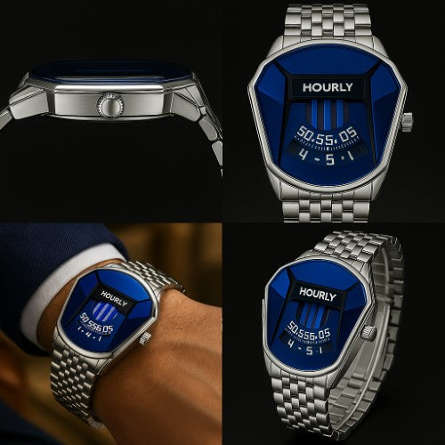 Geometría futurista y elegante que captura la luz desde todos los ángulos. Cada mirada al reloj es una experiencia visual.