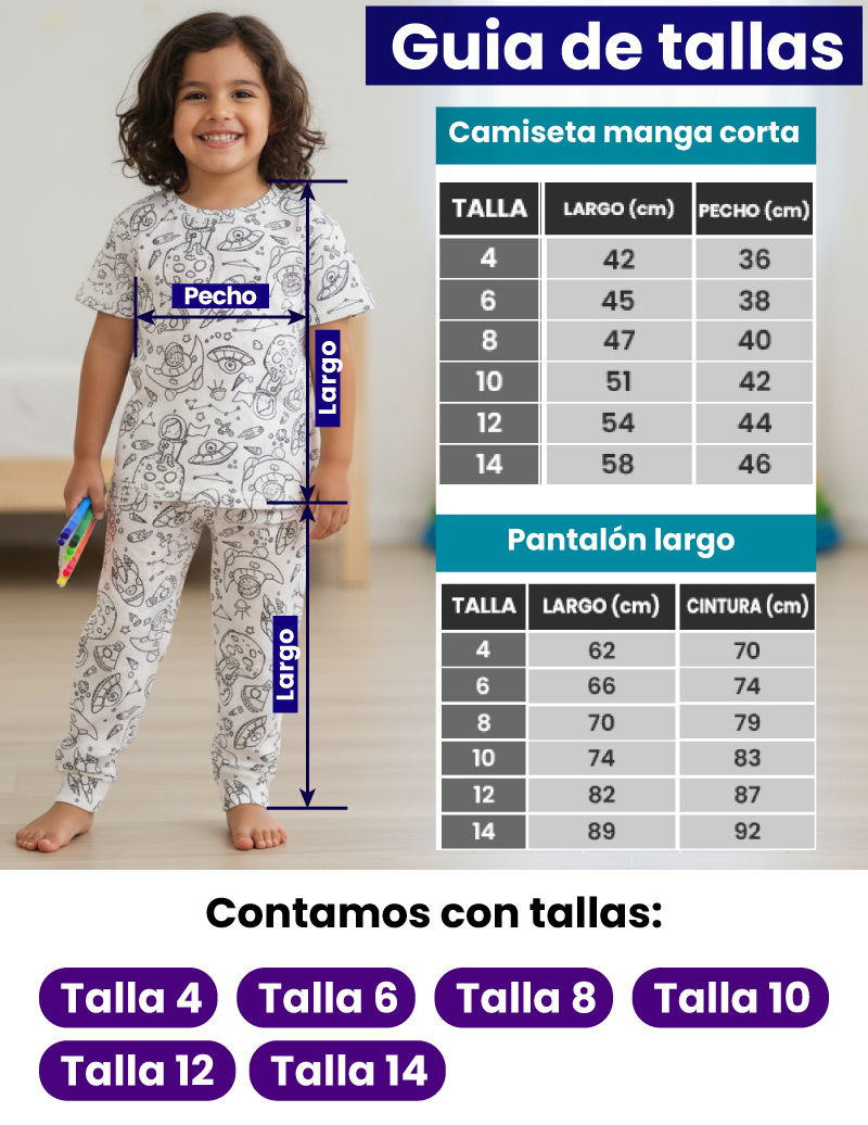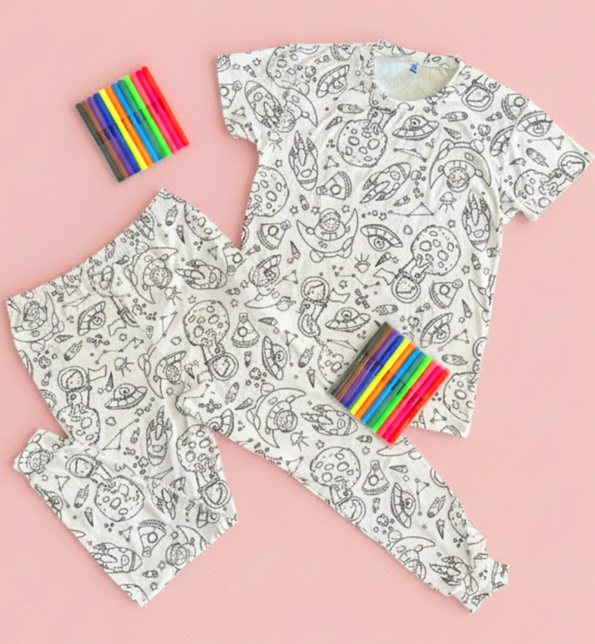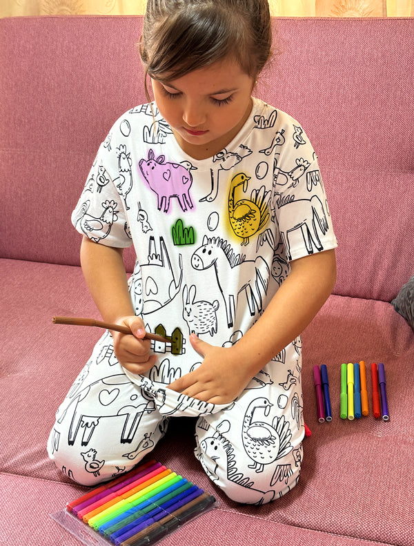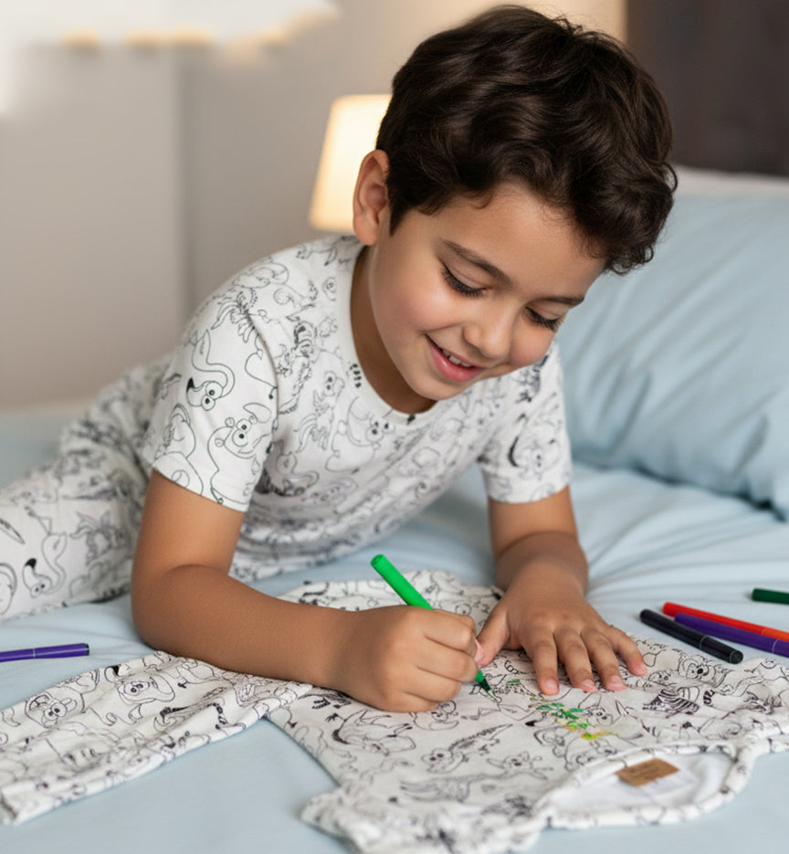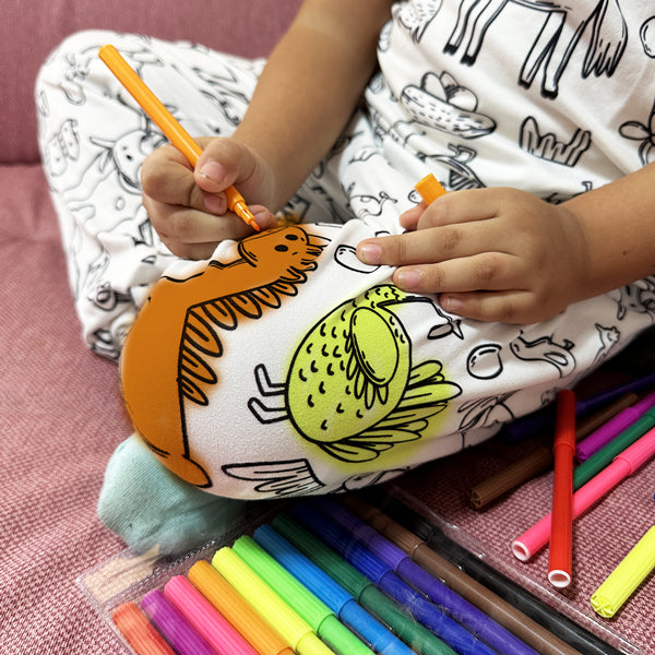Nuestras pijamas coloreables ayudan a tu hijo a relajarse y prepararse para una noche de dulces sueños.